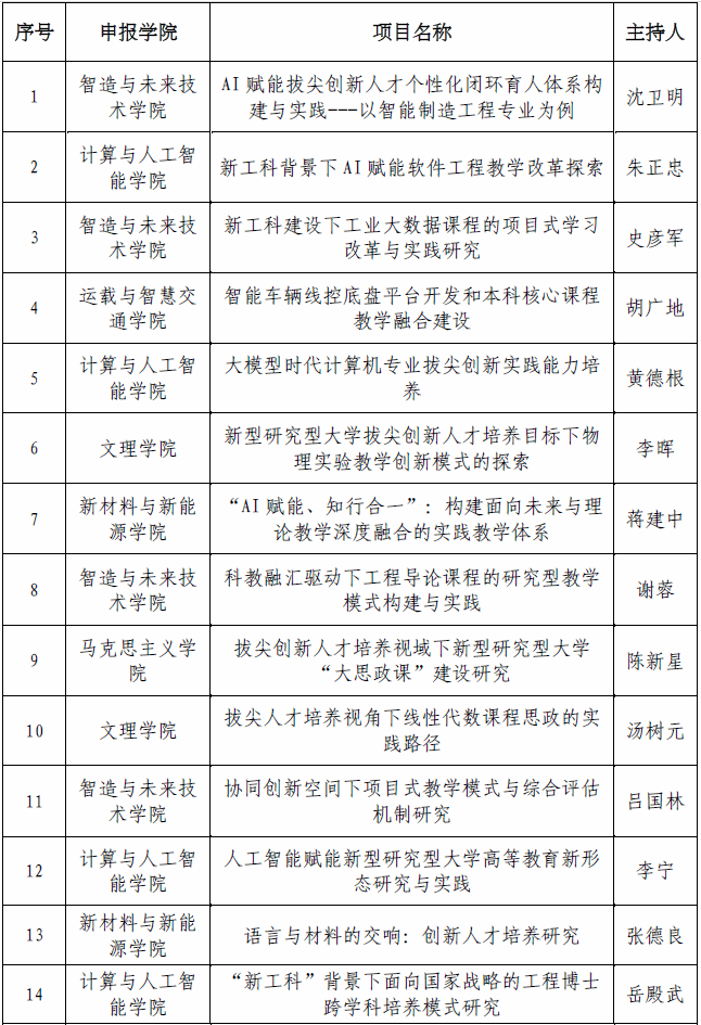 根据《关于开展2025年福耀科技大学教育教学研究项目暨福建省本科高校教育教学研究项目申报工作的通知》((2025)福耀科大教6号)要求,经个人申报、学院初审推荐及校外专家评审,拟立项14个项目为2025年福耀科技大学本科教育教学研究项目,现将名单予以公示。